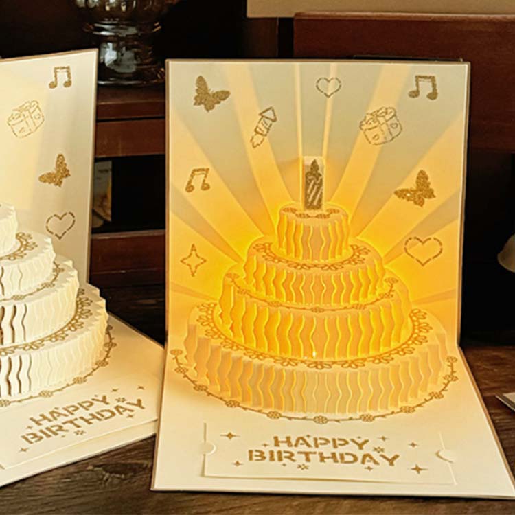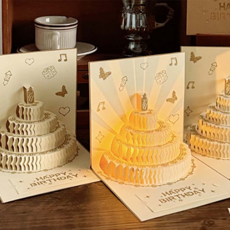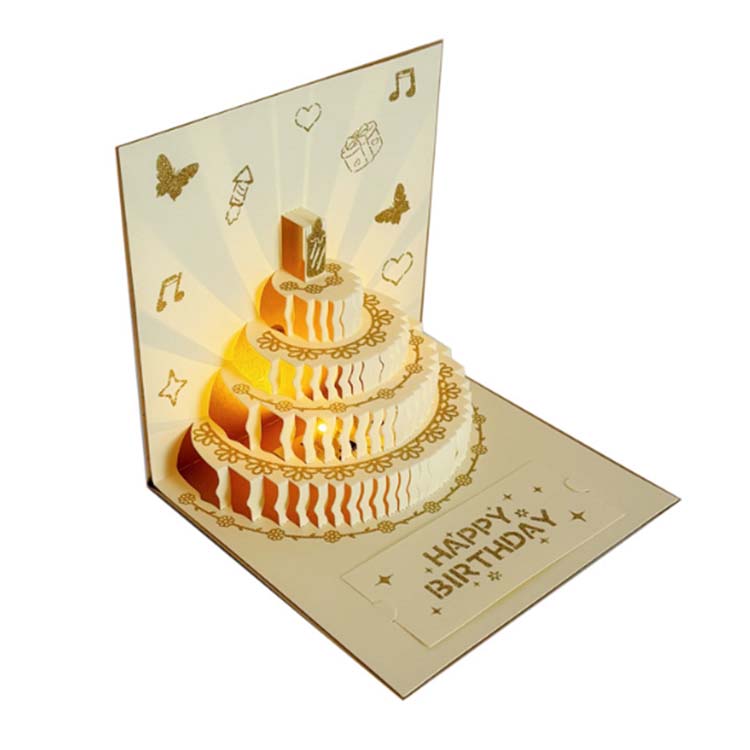 การ์ดวันเกิด 3D มีส่วนประกอบอิเล็กทรอนิกส์ที่มีเอฟเฟกต์แสงและเพลง ใช้งานง่าย