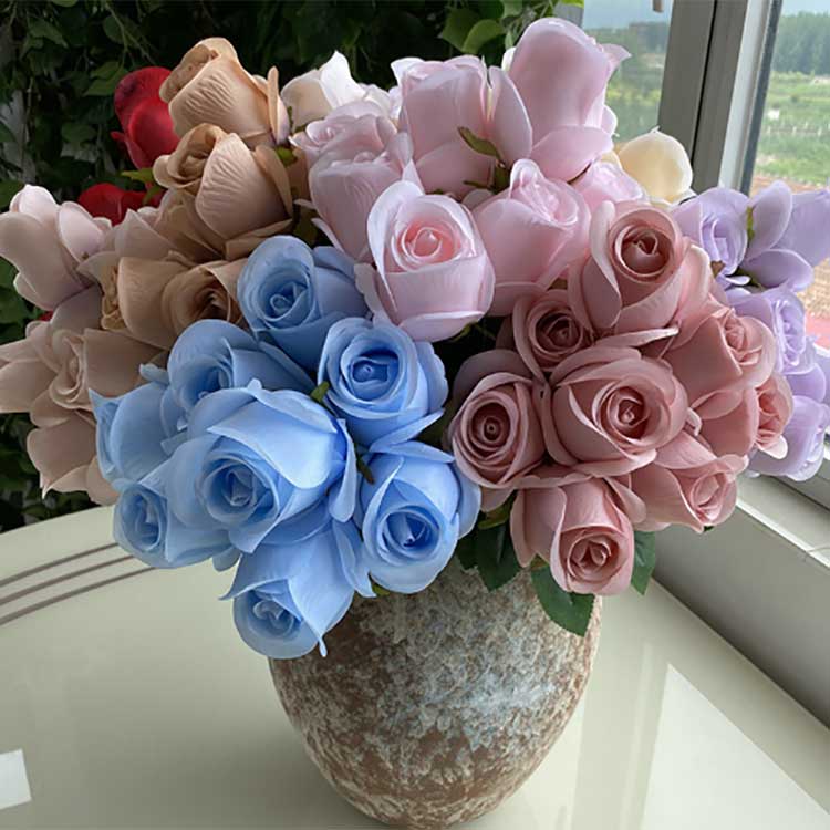 สีสันสดใส: ดอกไม้ประดิษฐ์มีโทนสีที่สดใสและมีชีวิตชีวา การผสมผสานระหว่างสีขาว ชมพู และเหลืองแบบคลาสสิกช่วยสร้างภาพลักษณ์ที่โดดเด่น สีชมพู เหลือง และสีอื่นๆ ยังสร้างความรู้สึกน่ารักและโรแมนติกอีกด้วย สีเหล่านี้ไม่เพียงดึงดูดความสนใจของผู้คนเท่านั้น แต่ยังสร้างบรรยากาศโรแมนติกอีกด้วย
