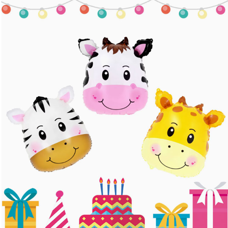 ลูกโป่งฟอยล์หัวสัตว์การ์ตูน ใช้เทคโนโลยีการพิมพ์ความละเอียดสูง ทำให้ได้สีสันสดใส และคืนรูปสัตว์น่ารัก ลูกโป่งประกอบด้วยสัตว์ต่างๆ เช่น เป็ดยาง หมีแพนด้า ยีราฟ สุนัขจิ้งจอก ช้าง ม้าลาย และกระต่าย เพื่อรองรับธีมต่างๆ