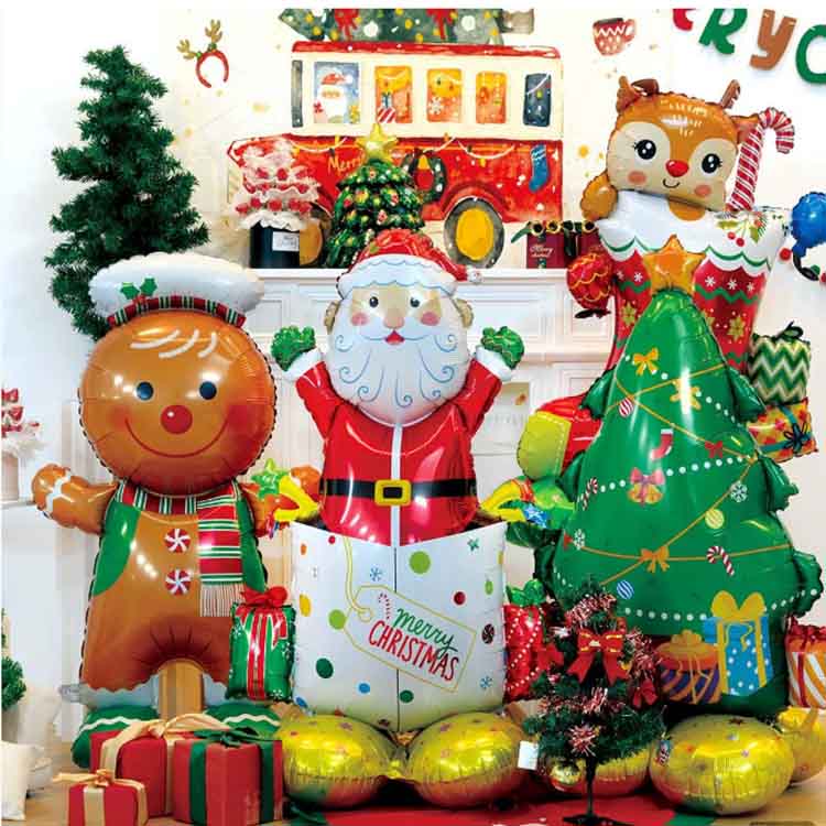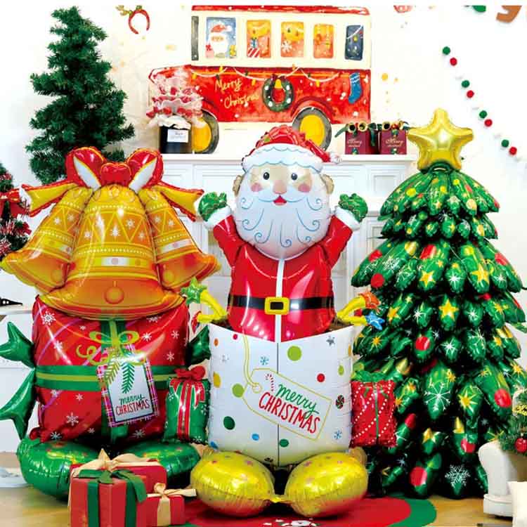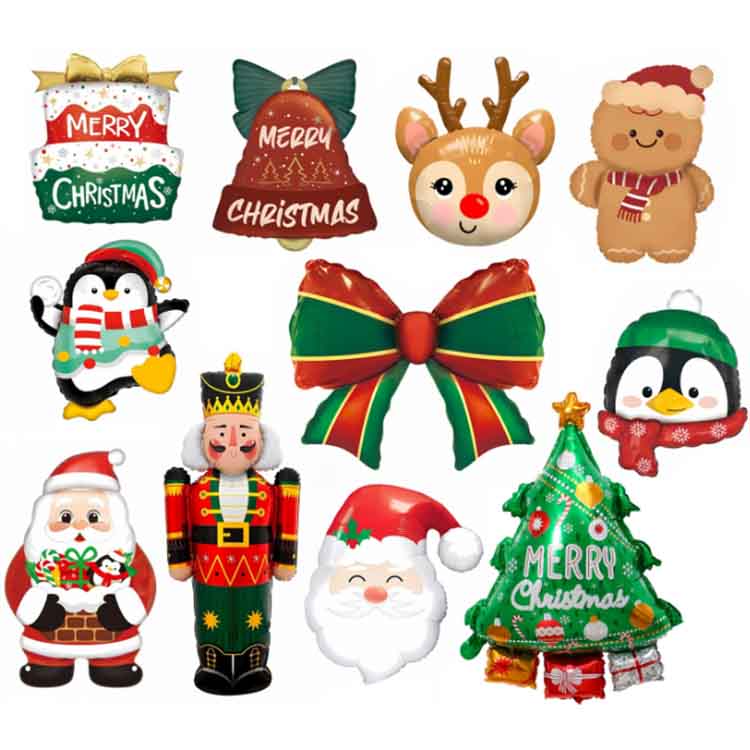 ลูกโป่งอลูมิเนียมฟอยล์คริสต์มาสมีองค์ประกอบคริสต์มาสในการออกแบบ มีจำหน่ายในรูปทรงคลาสสิก เช่น ซานตาคลอส ต้นคริสต์มาส เกล็ดหิมะ และระฆัง ลูกโป่งเหล่านี้ตกแต่งด้วยสโลแกน "สุขสันต์วันคริสต์มาส" สีต่างๆ รวมเอาองค์ประกอบของคริสต์มาส โดยส่วนใหญ่จะเป็นสีธีมคริสต์มาส เช่น สีแดง สีเขียว สีทอง และสีเงิน ทำให้เกิดบรรยากาศรื่นเริง มีจำหน่ายหลายขนาด ตั้งแต่ขนาดเล็ก 30 ซม. ไปจนถึงขนาดยักษ์ 100 ซม. สามารถรองรับสถานการณ์และความต้องการในการตกแต่งที่หลากหลาย