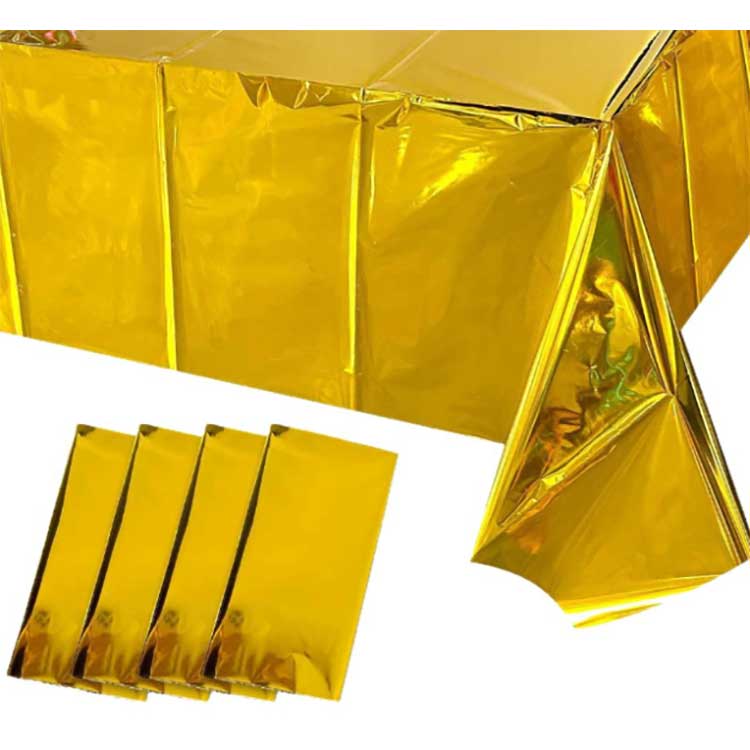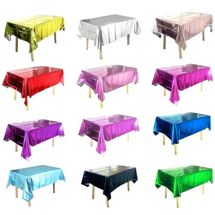 ผ้าคลุมโต๊ะฟอยล์ใช้สำหรับจัดโต๊ะในงานเฉลิมฉลองต่างๆ มันสามารถป้องกันพื้นผิวโต๊ะจากคราบ รอยขีดข่วน หรือความเสียหายได้ และสีและลวดลายยังสามารถนำมาซึ่งการตกแต่งได้อีกด้วย ทำจากฟิล์มเคลือบอลูมิเนียม PET ชนิดพิเศษ ในระหว่างกระบวนการผลิต เราใช้เทคโนโลยีการเคลือบสุญญากาศเพื่อให้มั่นใจถึงความแข็งแรง ความทนทาน และประสิทธิภาพในการต่อต้านริ้วรอยของผ้าคลุมโต๊ะ นอกจากนี้โมเลกุลที่มีความหนาแน่นสูงสามารถป้องกันการแทรกซึมของซุปหรือคราบน้ำมันได้อย่างมีประสิทธิภาพ และยังมีฟังก์ชันกันน้ำอีกด้วย