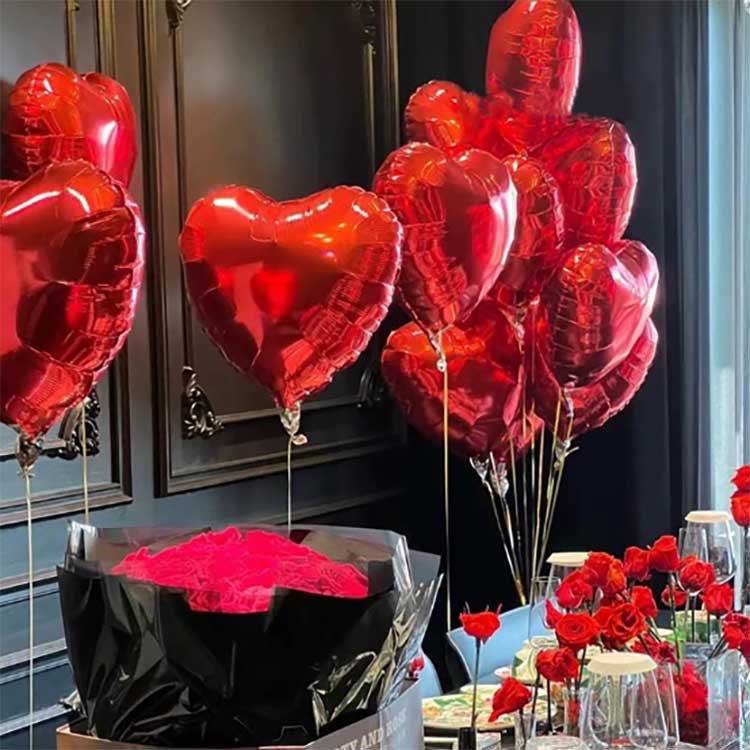 ลูกโป่งฟอยล์อลูมิเนียมรูปหัวใจทำจากวัสดุไนลอนหนา ลูกโป่งเหล่านี้มีการออกแบบที่สดใสพิมพ์ด้วยหมึกที่เป็นมิตรกับสิ่งแวดล้อม มีลูกโป่งจำนวน 50 ลูกต่อแพ็ค