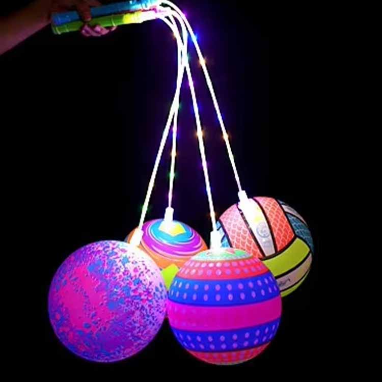 ลูกบอลมีไฟ LED ทำจากวัสดุ PVC ที่เป็นมิตรต่อสิ่งแวดล้อมอย่างหนา (ความหนา 0.18 มม. หนากว่าลูกโป่งธรรมดาถึง 30%) และมีด้ามจับแบตเตอรี่ ที่จับแต่ละอันต้องใช้แบตเตอรี่ AA 3 ก้อนเท่านั้น เพิ่มความสนุกสนานได้มาก การออกแบบเชือกรูดแบบขยายขนาด 90 ซม. เหมาะสำหรับเด็กและผู้ใหญ่