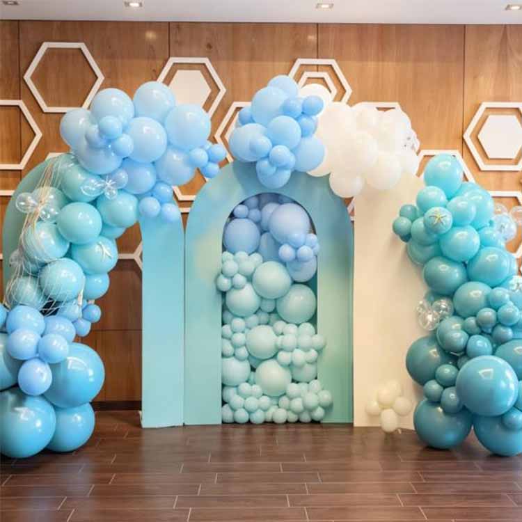 ความสามารถในการปรับแต่ง: สามารถเพิ่มหรือลดจำนวนลูกโป่งได้ขึ้นอยู่กับสถานการณ์ (เช่น ลูกโป่ง 10-15 ลูกสำหรับพื้นที่ขนาดเล็ก, 30 ลูกขึ้นไปสำหรับพื้นที่ขนาดใหญ่) นอกจากนี้ยังสามารถขยายร่วมกับองค์ประกอบมหาสมุทรอื่นๆ ได้ (เช่น ม่านผ้าทูลสีฟ้า ผ้าปูโต๊ะธีมมหาสมุทร)