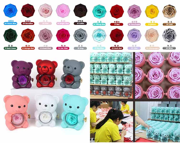 ในระหว่างกระบวนการผลิต จะมีการควบคุมคุณภาพอย่างเข้มงวด และหมีกอดเซอร์ไพรส์ดอกไม้ที่เก็บรักษาไว้แต่ละตัวจะต้องผ่านการตรวจสอบคุณภาพหลายครั้ง หลังการผลิต ผู้ตรวจสอบคุณภาพโดยเฉพาะจะทำการตรวจสอบรูปลักษณ์โดยรวมของหมี ความสมบูรณ์ของการออกแบบ และการตกแต่งอย่างละเอียดอย่างละเอียด