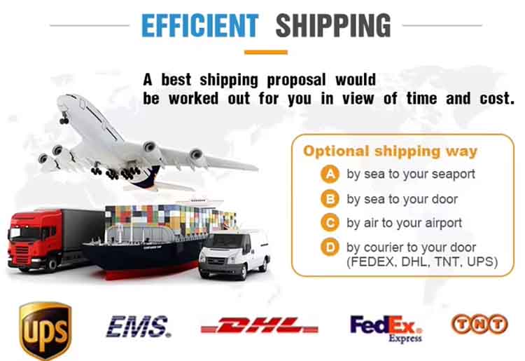 เรามีพันธมิตรที่มั่นคงและยาวนานกับบริษัทโลจิสติกส์หลายแห่ง! ไม่ว่าคุณจะอยู่ที่ไหนในโลก เราสามารถรับประกันได้ว่าพัสดุของคุณจะถูกจัดส่งถึงคุณตรงเวลาและเป็นไปตามข้อกำหนดเฉพาะของคุณ