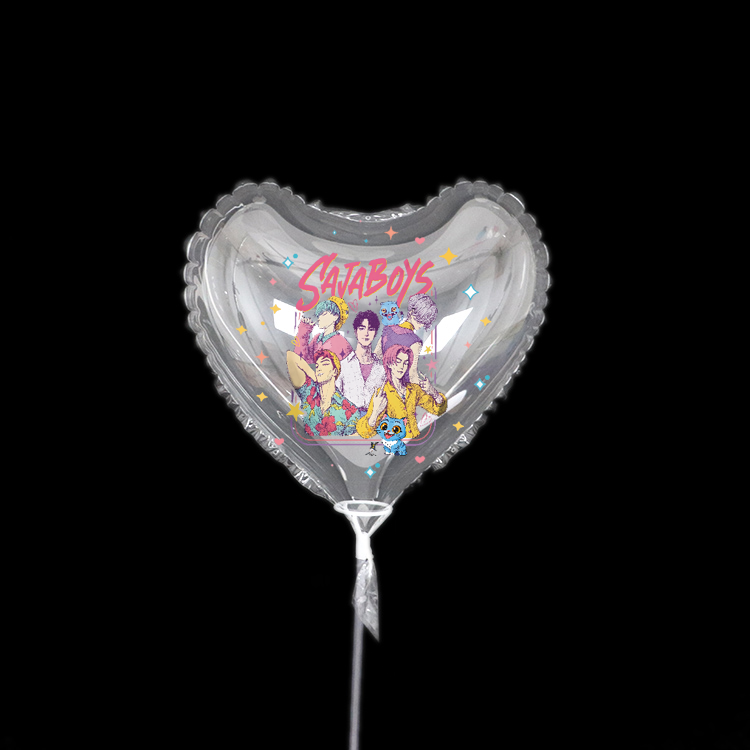 ลูกโป่ง Bobo พิมพ์ลายของ Kpop (ส่วนใหญ่เป็นทรงกลมโปร่งใส แต่บางอันมีรูปร่างผิดปกติเหมือนหัวใจและดวงดาว) โดยทั่วไปจะมีเส้นผ่านศูนย์กลางตั้งแต่ 18 ถึง 36 นิ้ว เหมาะสำหรับสิ่งของพกพาประเภทต่างๆ และการตกแต่งฉาก พื้นที่การพิมพ์ได้รับการควบคุมอย่างแม่นยำตรงกลางบอลลูน (เพื่อป้องกันการยืดและการเสียรูประหว่างการพองตัว) โดยมีค่าเผื่อการยืด 30%-50% เพื่อให้แน่ใจว่ารูปแบบจะสมบูรณ์และชัดเจนหลังการพองตัว