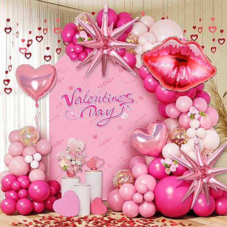 ชุดพวงมาลัยลูกโป่งวันวาเลนไทน์ประกอบด้วยลูกโป่งยางที่เป็นมิตรต่อสิ่งแวดล้อมและลูกโป่งฟอยล์สีสันสดใสที่ออกแบบมาสำหรับการใช้งานที่ยาวนาน ประกอบด้วยลูกโป่งยางคละขนาด 50-80 ลูก และฟอยล์หัวใจ/ตัวอักษรตกแต่ง 5-8 ลูก ชุด DIY ประกอบด้วยโซ่บอลลูน จุดกาว ริบบิ้น และคำแนะนำ ประกอบง่าย ใช้ได้ทั้งภายในและภายนอก